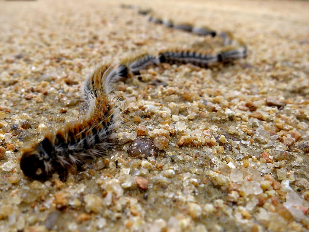 Cuando las orugas alcanzan su madurez, abandonan los bolsones y descienden por los troncos en “procesión” para buscar un lugar adecuado donde enterrarse.