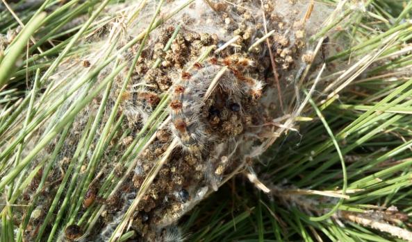 A principios de diciembre, las orugas comienzan a formar los típicos bolsones de seda en las ramas soleadas de los pinos.